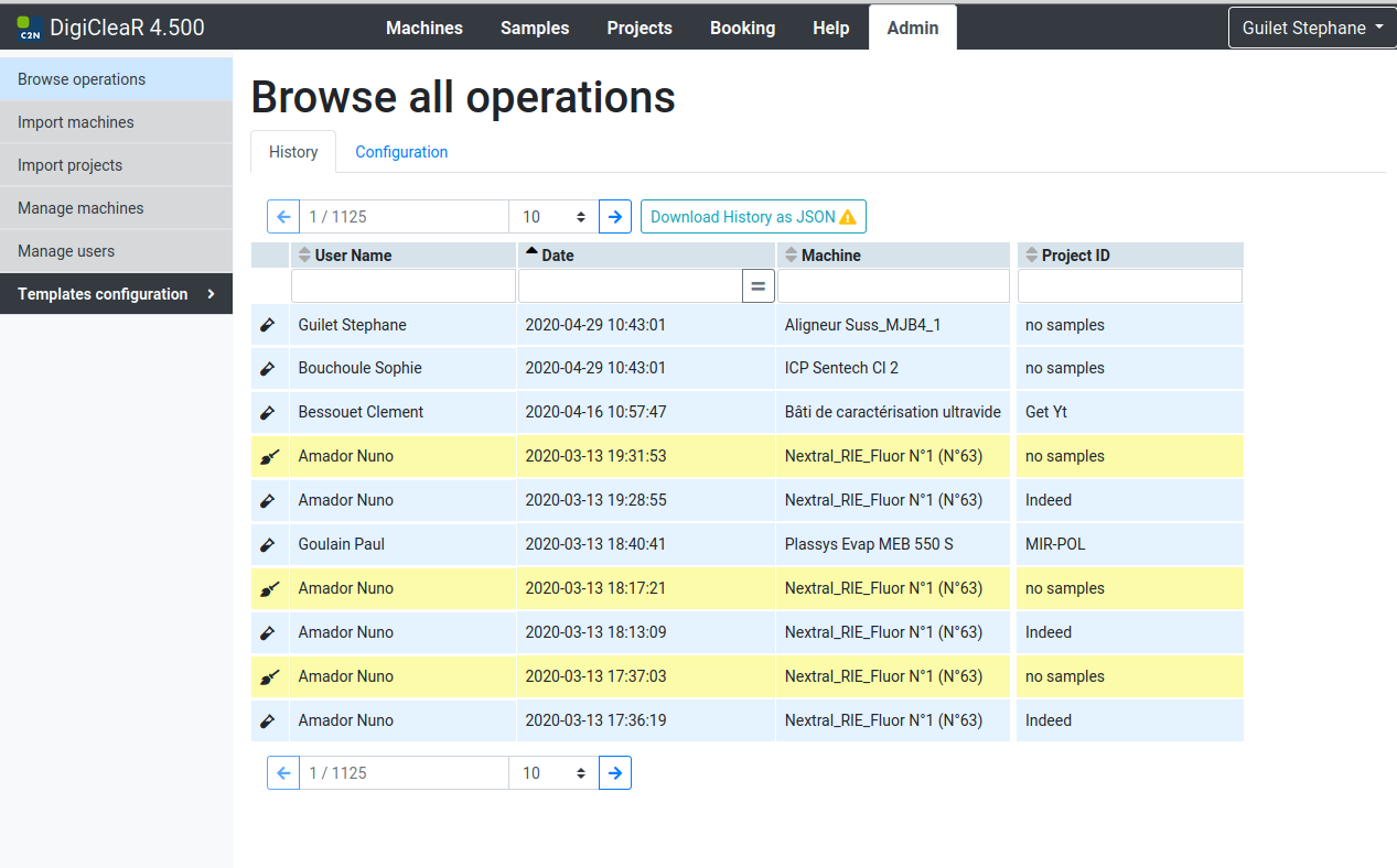 You can produce a complete JSON file with all the projects of the laboratory with the name of persons involved. Then you can import this file into the database of DigiCleaR.
