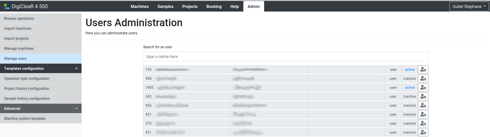 To manage Users, you can find the option in the Admin menu like the menu Manage machines (here)